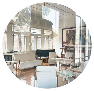 北房是原起居室,铁架床、搪瓷杯、收音机等旧物皆按原貌摆放,床头的电铃、床栏挂着的鞋拔藏着先生卧床看书、深夜笔耕的日常,故居为旧物做了专业防尘、防氧化保护。原会客室里,条纹沙发与雕花茶几陈设如初,阳光投下斑驳光影,似仍回荡着先生与友人畅谈文学的声音。