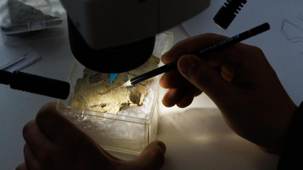 3月3日,朱幼安研究员在中国科学院古脊椎动物与古人类研究所办公室研究重庆始骨鱼化石。这项研究由中国科学院院士、中国科学院古脊椎动物与古人类研究所研究员朱敏团队完成,相关成果形成2篇学术文章,于北京时间3月5日在国际学术期刊《自然》同期发表。